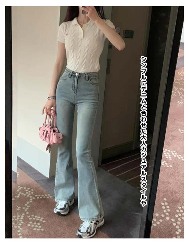 ケーブルニットポロ レディース ニット セーター 半袖 トップス ケーブルニット 春ニット サマーニット 春服 夏服 Tシャツ 無地 春 夏 秋 ニットポロシャツ