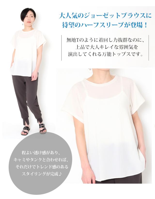 プルオーバーシャツ 半袖 レディース キレイめ シアー dolly-sean ドーリーシーン ストレッチジョーゼット カットソー シャツ 透け感 シースルー オフィス 黒 白 bl 上質 大人 上品 シンプル とろみ 日本製 おしゃれ ブランド 夏 M-8072