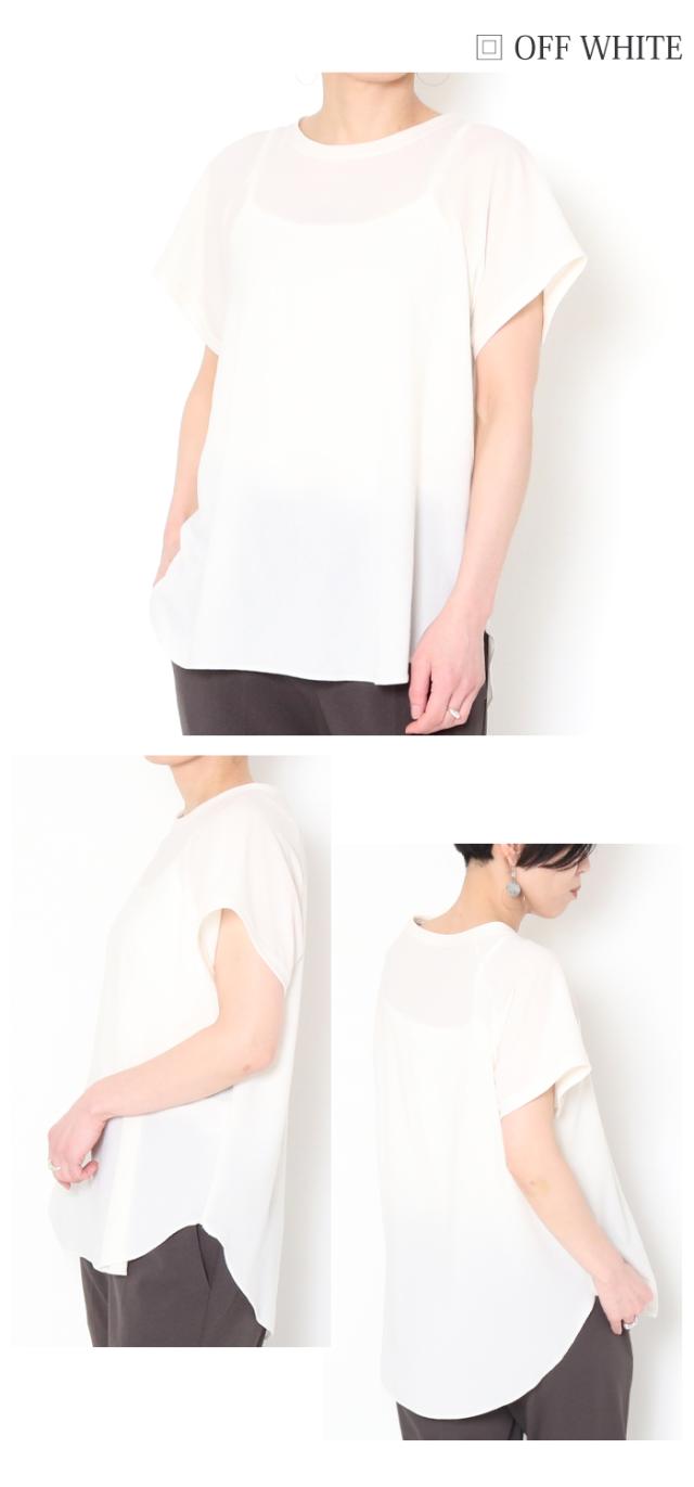 | キャミやタンクと合わせるだけでおしゃれに見える楽ちんカットソーです。ボトムスはきれいめパンツからスカートはもちろん、シンプルにデニム合わせでもキレイめに見えるので、Tシャツだとカジュアルすぎる、でもリラックス感もほしい・・・というときにピッタリ。インしてもふんわりしたシルエットになるのでバランスが取りやすいですね。色違いで欲しくなるアイテムです。 |
