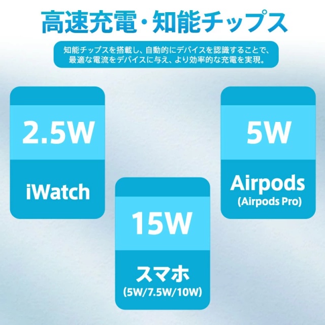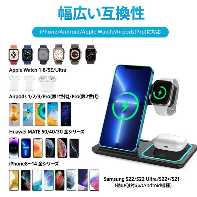 対応機種:iPhone8以降、Qi対応Android機種、Airpods(Pro)、Apple Watch全機種