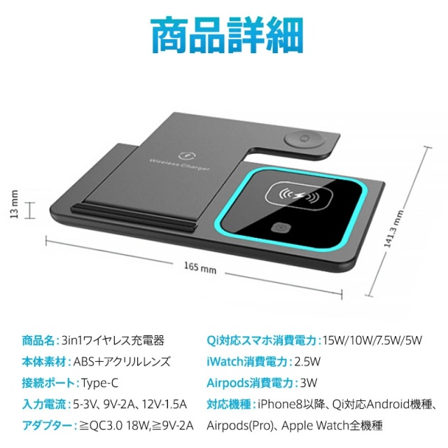 商品名:3in1ワイヤレス充電器