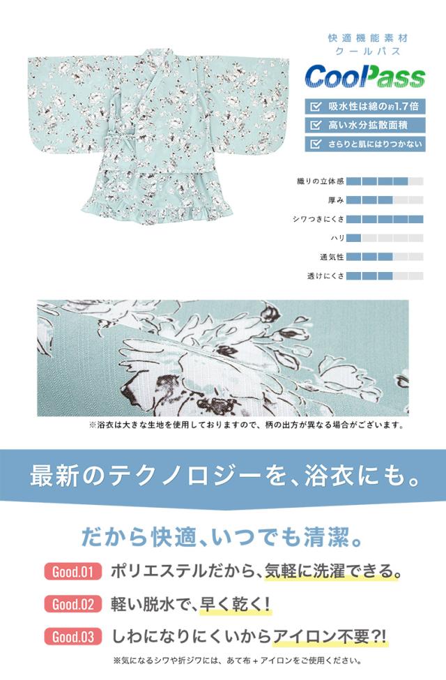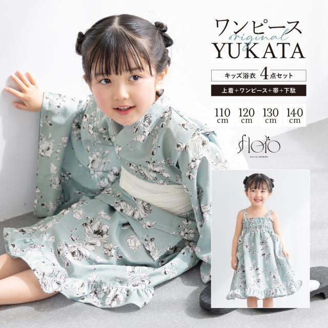 浴衣 セット キッズ 女の子 ワンピース浴衣 兵児帯 セパレート 浴衣セット floro くすみブルー 白 花 涼しい かわいい 吸水速乾 110cm 120cm 130cm 140cm 送料無料