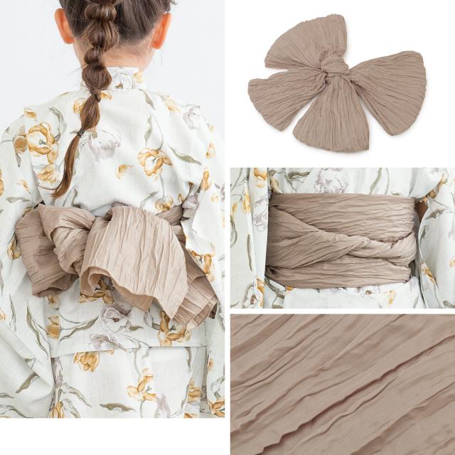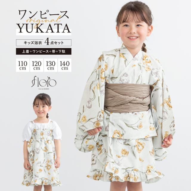 浴衣 セット キッズ 女の子 ワンピース浴衣 兵児帯 セパレート 浴衣セット floro 白 黄 薄茶 花 涼しい かわいい 吸水速乾 110cm 120cm 130cm 140cm 送料無料