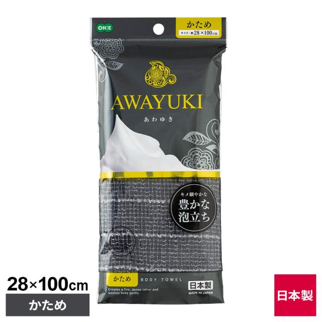 ボディタオル あわゆき ナイロンタオル かため グレー | 浴用タオル ナイロン お風呂用 日本製 ハード ボディウォッシュ バス用品 バスグッズ ふわふわ モコモコ 泡立ち メンズ オーエ 体洗い