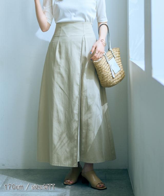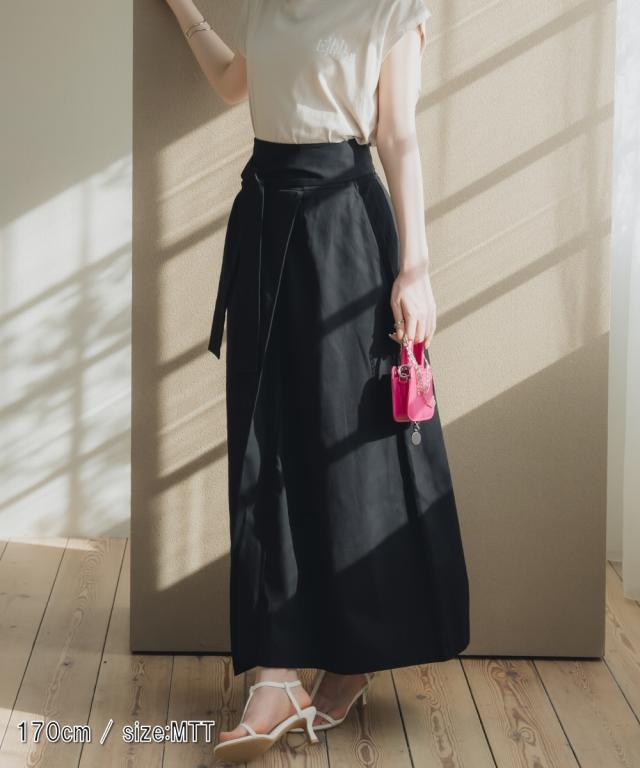【高身長な方向け】スタイルアップが叶うラップ風デザインフレアロングスカート ■デザイン ・ややハイウエストデザイン。スタイルが映えるデザインです。・女性らしい華やかなフレアシルエット。・巻きスカート風デザイン。・共布ベルト付き。取り外し可能です。 ■素材 ・シルエットが綺麗に見えるツイル素材を使用。・肌触り優しいコットン素材。 ■おすすめのスタイリング ボリューム感あるフレアシルエットスカートにはすっきりとしたトップスを合わせるのがおすすめ。共布ベルトの有無で表情が変わる着回ししやすいアイテムです