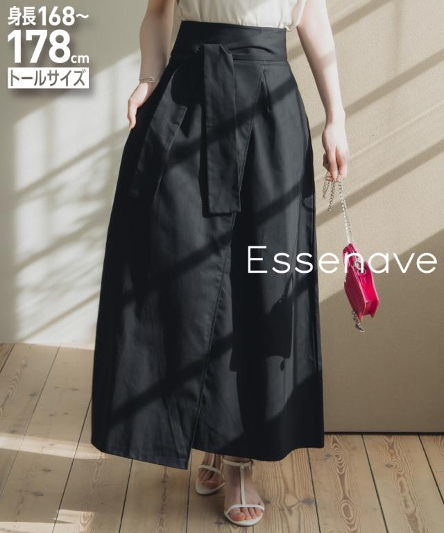 ロングスカート トールサイズ レディース 高身長 綿100% ベルテッドラップ風 スカート Essenave 夏 マキシスカート 長め ロンスカ M/L ニッセン nissen