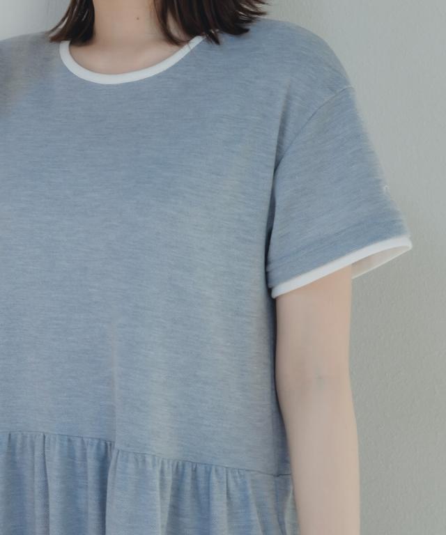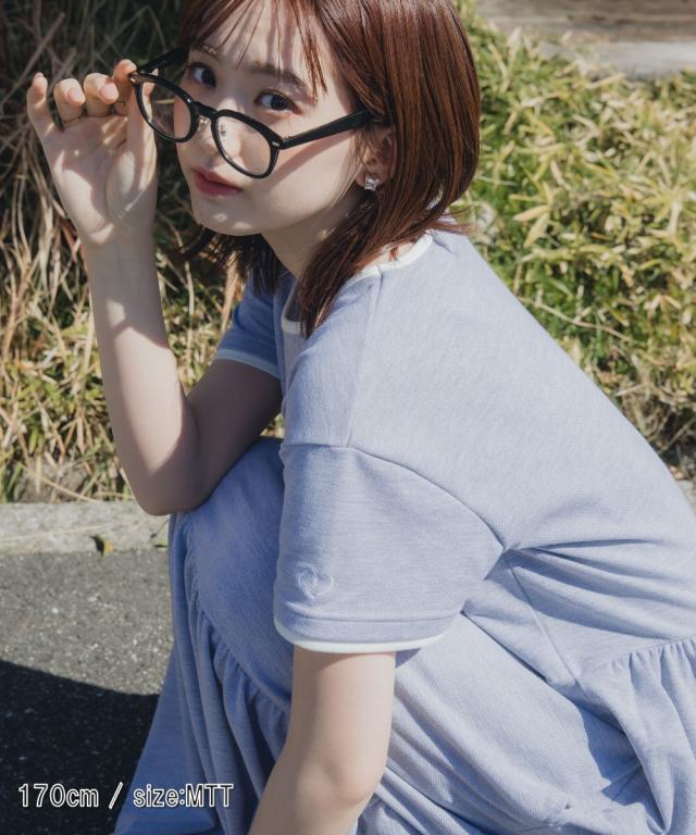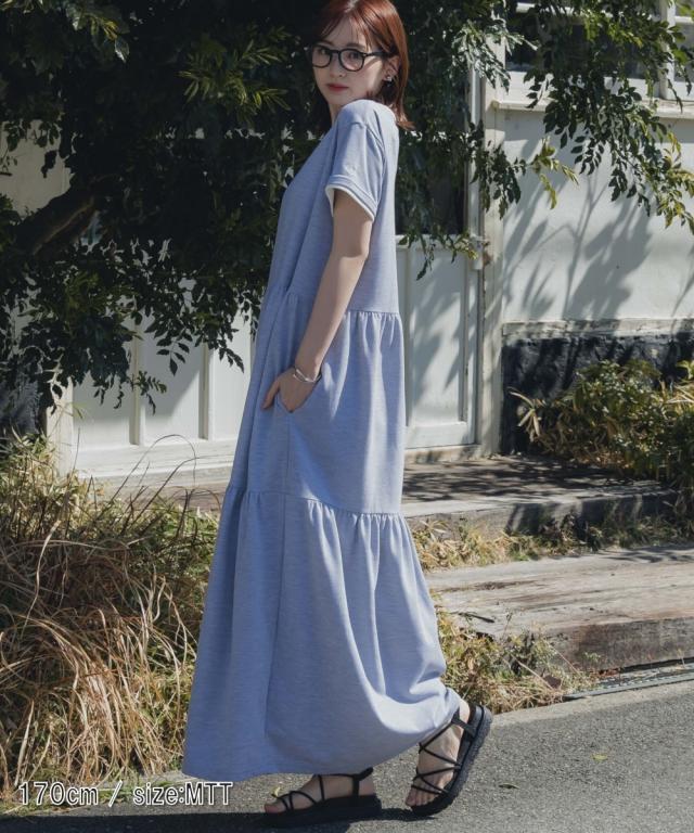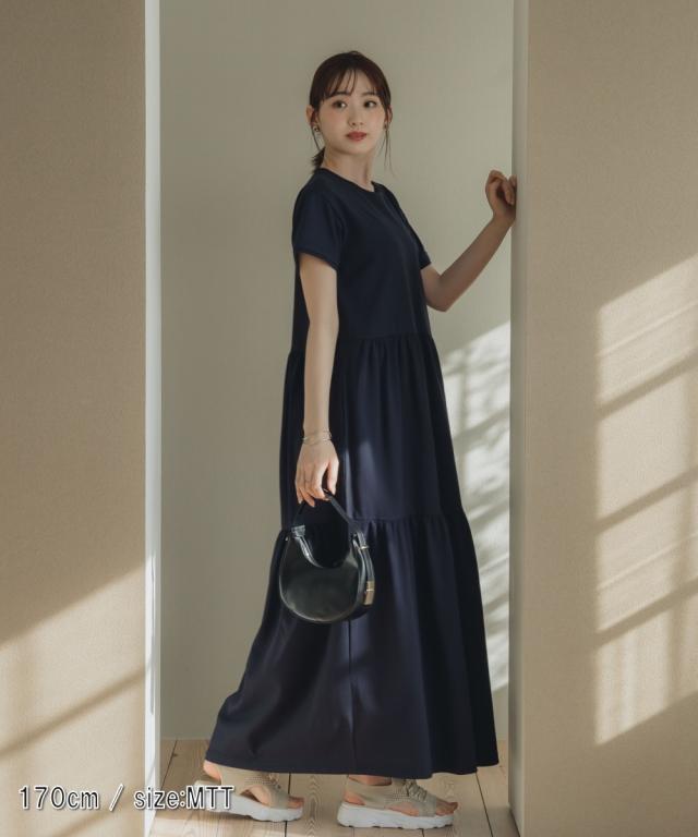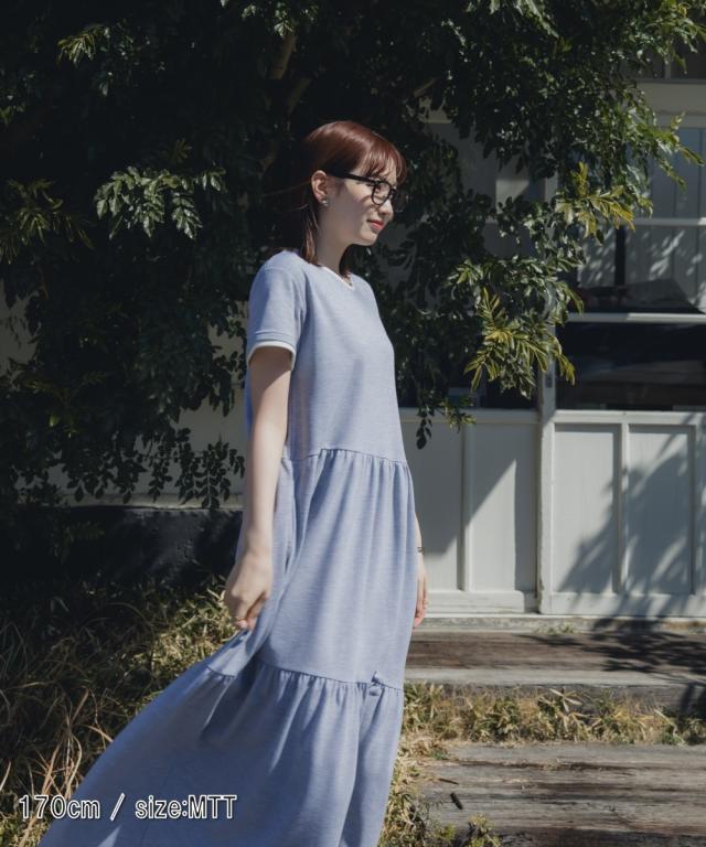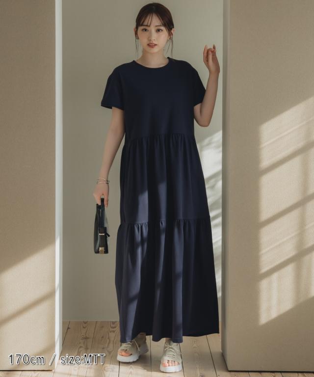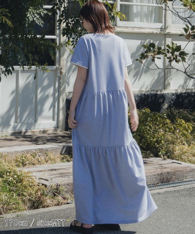 【高身長な方向け】夏に着たい鹿の子素材ボリュームフレアマキシ丈ワンピース ■デザイン ・すっきり着れるラウンドネックデザイン。・衿元、袖口周り配色デザイン(杢グレー)。ネイビーは同色となります。・左袖部分ハート柄刺しゅう入り。・ウエスト切り替え、スカート部ティアードデザイン ■素材 ・清涼感と通気性に優れたさらっとした肌あたりの鹿の子素材を使用。 ■おすすめのスタイリング 1枚で着れる夏ワンピ。スニーカー、サンダルどちらでも相性ばっちりです 細部まで可愛いを詰め込んだこだわりのアイテムです。