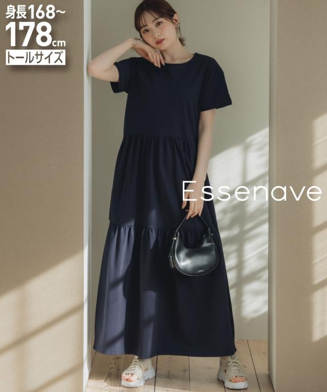 ワンピース ロング マキシ トールサイズ レディース 高身長 鹿の子ティアードフレア Essenave 夏 ひざ下 LL/3L/4L/5L ニッセン nissen
