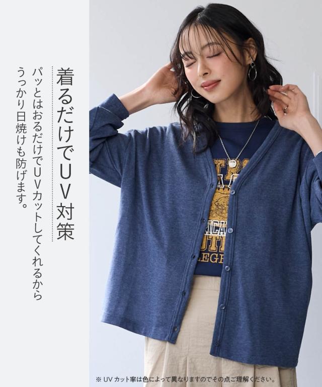 カーディガン 大きいサイズ レディース 綿混うすカル?Xネックゆるシルエット UVカット 吸汗速乾 抗菌防臭 毛玉防止 有 夏 羽織り 5L〜6L