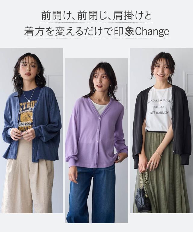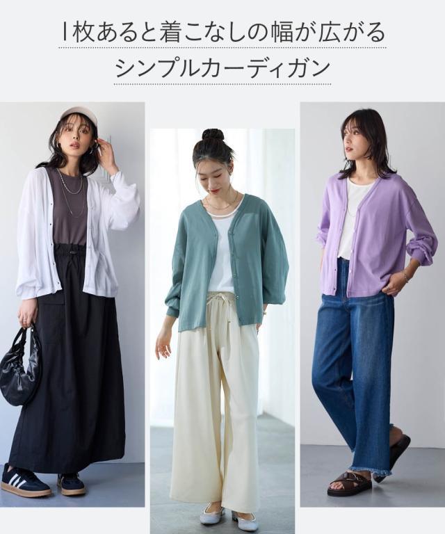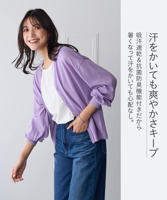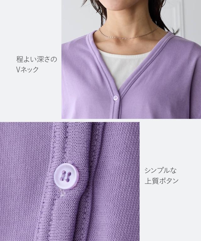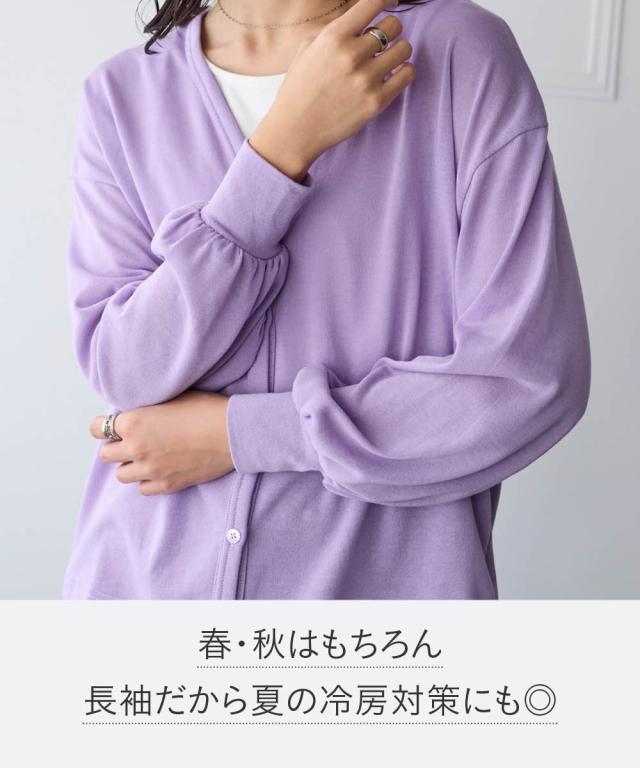 【シリーズ累計枚数90,000枚を誇るうすカルシリーズからトレンドのオーバーサイズふんわり袖のカーデが登場 】さらっとした綿混素材で、薄くて、軽くて、UVカットもできる!毛玉もできにくいので長く使えて着まわせるVネックカーディガンです ■デザイン ゆったりしたドロップショルダーで肩まわりが動かしやすいのがポイント。パフっとしたふんわり袖が今年っぽくキュート!インに合わせるものを選ばないスッキリVネックで小顔に。縦ラインを強調するデザインでスッキリ見せてくれます。 ■素材 吸汗速乾、抗菌防臭、毛玉防止加工もある夏に頼れる1枚です。薄くて軽いから、バッグに入れて持ち運びにも便利です。風通る通気性で軽く涼しく着用できので夏の紫外線対策にぴったり。夏らしい柔らかなカラーに加え、必ず使えるベーシックカラーをご用意! ■おすすめのスタイリング シンプルなデザインなのでどんなアイテムでも合わせやすいです。ワイドパンツのようなボリュームのあるものからストレートパンツのようなすっきりしたタイプまでなんでも合います。もちろんスカートやワンピースもかわいくきまります。襟元もスッキリしたデザインなので合わせるものの襟のデザインを問いません。カバン