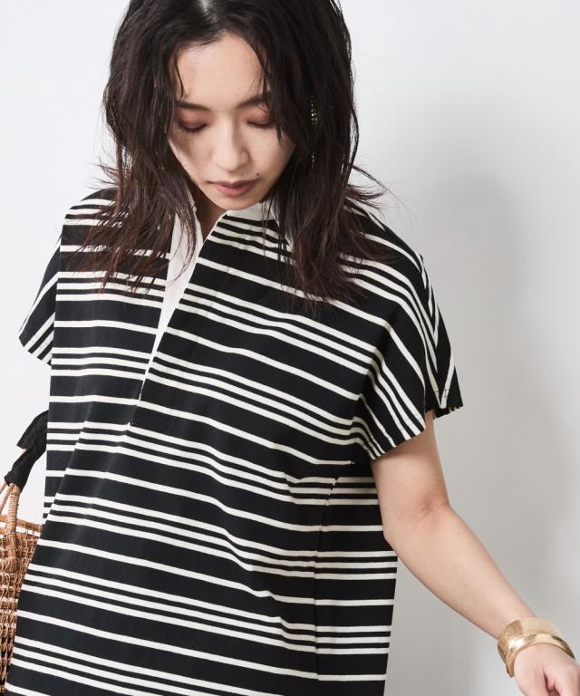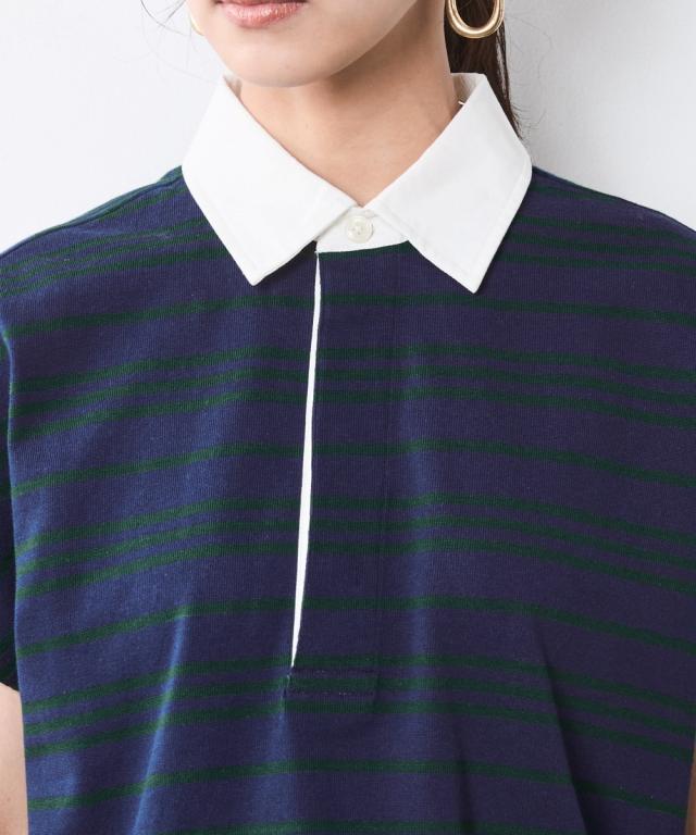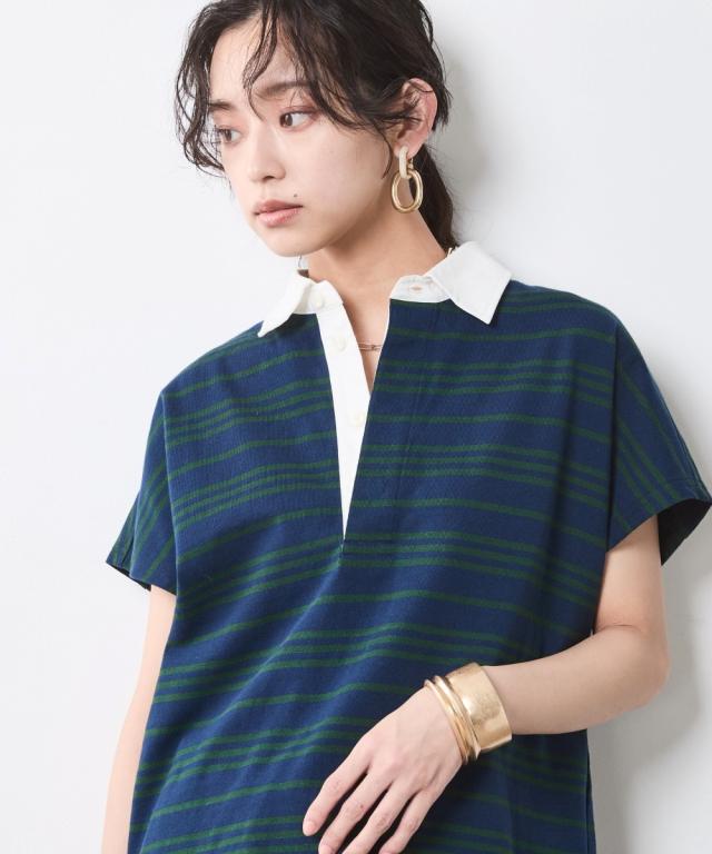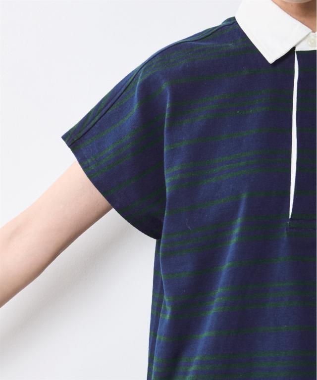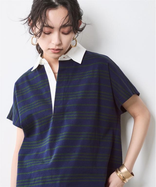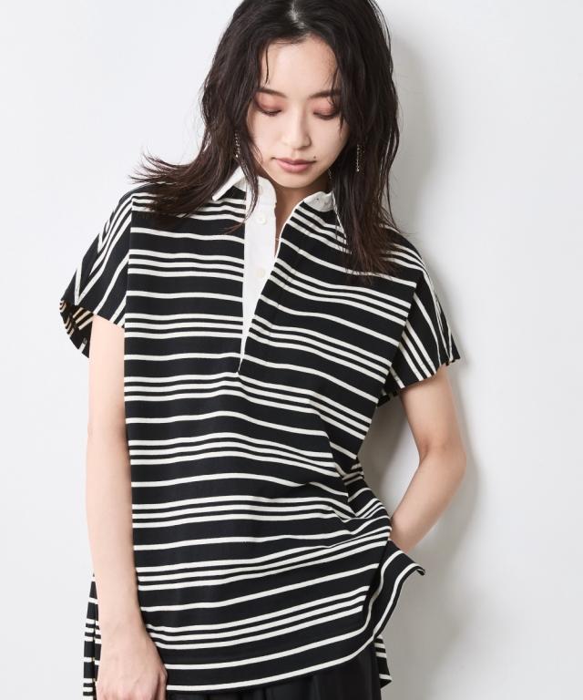 ボーダー柄が目を惹く、ゆったりシルエットのラガーシャツ。 ■デザイン 大人のカジュアルスタイルにスポーツテイストをほどよくMIXし遊び心をプラスしたラガーシャツ。 緩やかな曲線を描くフレンチスリーブデザインだからカジュアル過ぎず女性らしいシルエットになるのも魅力のひとつ。 オトナカジュアルのリラックス感のある着こなしを楽しんで。 ■素材 程よく厚みのある天竺生地を使用。 ■おすすめのスタイリング インしてもアウトにしても決まる前後差のあるデザインなのでスカートでもパンツとも合わせやすいです。