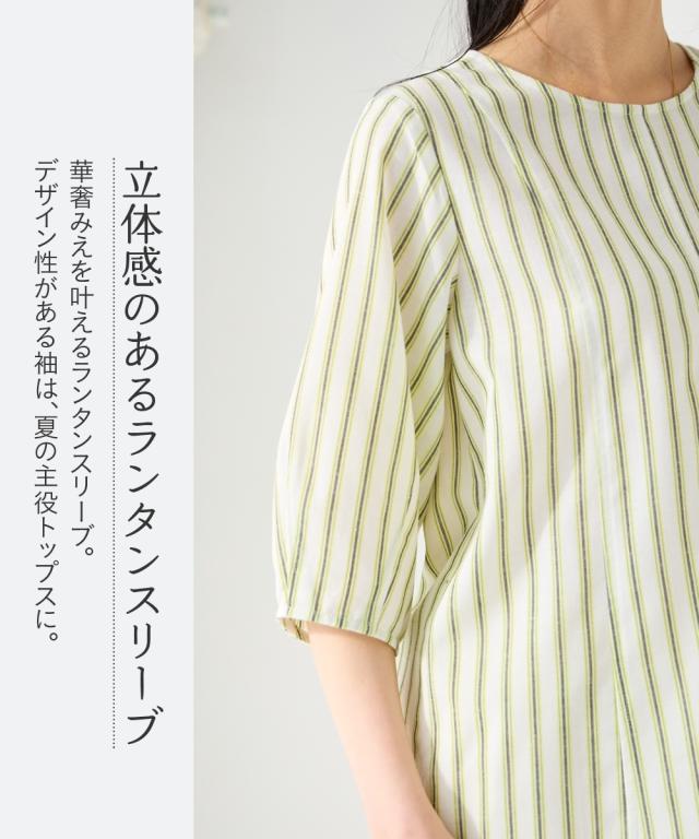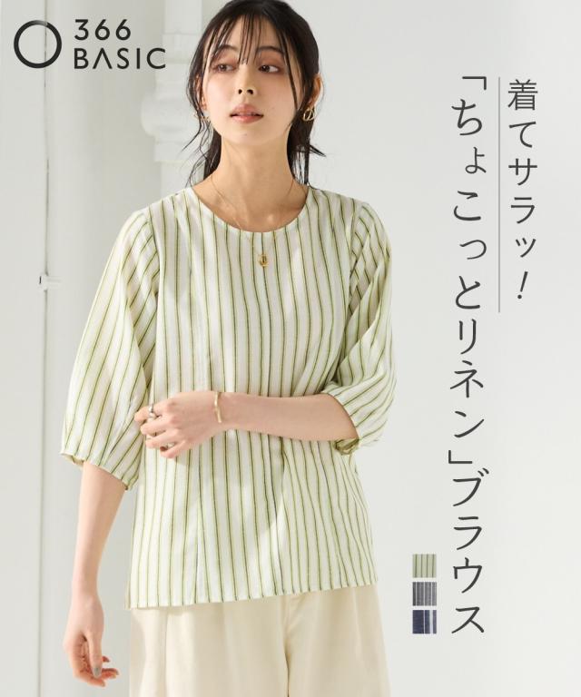 ちょこっとリネンが良きところな夏素材ブラウス ■デザイン バルーン袖で即こなれる。1枚着るだけですぐにおしゃれだから忙しい朝に嬉しいアイテム。クルーネックで着やすいデザイン。程よくインパクトのあるストライプ柄が夏の太陽に映え、リゾートにも最適! ■素材 リネン素材は夏に最適だけど、デメリットも多い・・そこでリネンの良さを損なわずデメリットを払拭した「ちょこっとリネン」。暑い夏をカイテキに過ごす機能素材です。 ■おすすめのスタイリング 1枚着るだけでサマになる。ボトムとレイヤードしてもオシャレです。