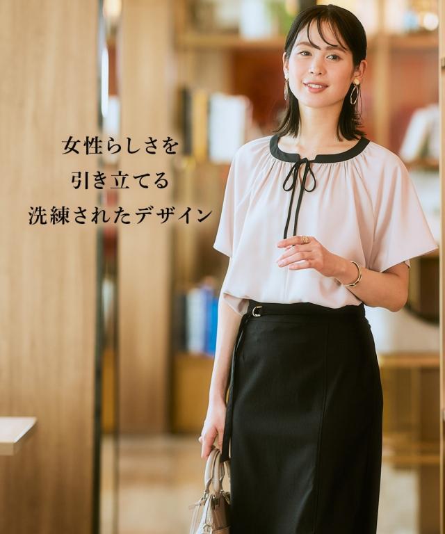 【大人フェミニンな細ボウタイが映えるブラウス】ジャケットスタイルがさりげなく華やぐ計算設計。時短も叶えるアクセいらずな1枚。 ■ポイント ・滑らかでとろみのあるストレッチパウダーサテンシリーズ。 ・アクセがなくても着映えるボウタイデザイン。 ■デザイン ・エレガンスな細め配色ボウタイがコーデを格上げし、ジャケットインがすっきりきれいに決まるデザイン。 ・着脱しやすい前リボン開き仕様。 ・二の腕カバーを叶えるややふんわり袖。 ・衿元のギャザーで美しいデコルテを演出。 ■素材 ・働く女性の毎日をサポートする「しわになりにくい、速乾、洗濯機OK、UVカット」の優秀機能素材。 ・光沢感とストレッチ感のあるパウダーサテン生地。 ■おすすめのスタイリング ・シンプルなジャケットに合わせるだけで簡単着映え。 〜働く服〜 nissenの通勤服専門ブランド。 仕事の日、休日、イベントの日まで、 働く女性の毎日を商品やコンテンツを通して、 自分らしく快適でいられる“働く服改革”をサポートします。