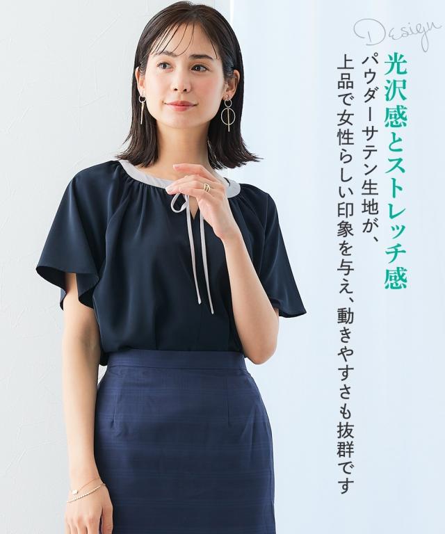 【大人フェミニンな細ボウタイが映えるブラウス】ジャケットスタイルがさりげなく華やぐ計算設計。時短も叶えるアクセいらずな1枚。 ■ポイント ・滑らかでとろみのあるストレッチパウダーサテンシリーズ。 ・アクセがなくても着映えるボウタイデザイン。 ■デザイン ・エレガンスな細め配色ボウタイがコーデを格上げし、ジャケットインがすっきりきれいに決まるデザイン。 ・着脱しやすい前リボン開き仕様。 ・二の腕カバーを叶えるややふんわり袖。 ・衿元のギャザーで美しいデコルテを演出。 ■素材 ・働く女性の毎日をサポートする「しわになりにくい、速乾、洗濯機OK、UVカット」の優秀機能素材。 ・光沢感とストレッチ感のあるパウダーサテン生地。 ■おすすめのスタイリング ・シンプルなジャケットに合わせるだけで簡単着映え。 〜働く服〜 nissenの通勤服専門ブランド。 仕事の日、休日、イベントの日まで、 働く女性の毎日を商品やコンテンツを通して、 自分らしく快適でいられる“働く服改革”をサポートします。