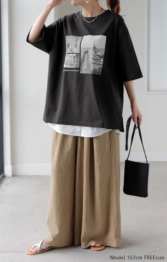 フォトプリントがスタイリングに映える半袖カットソーです。