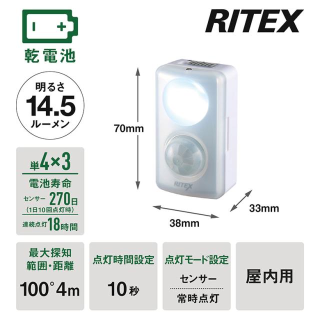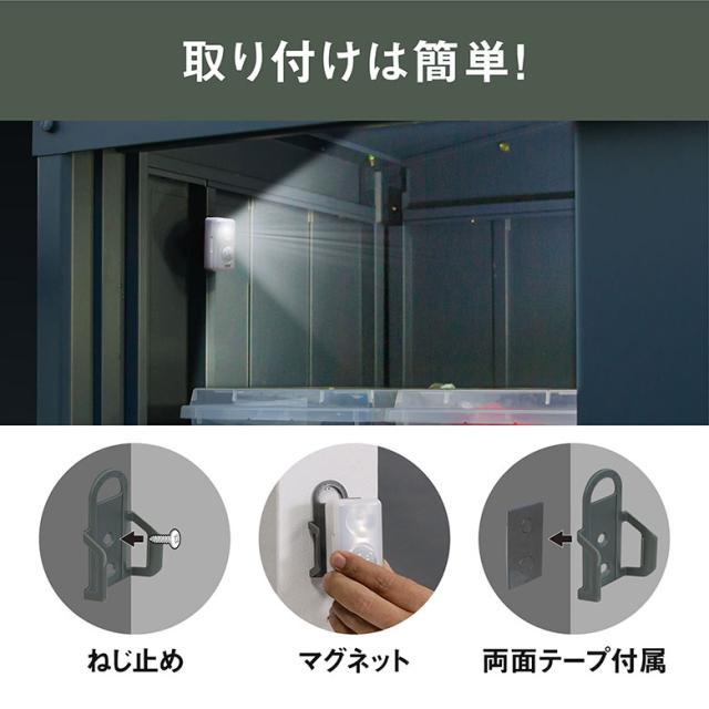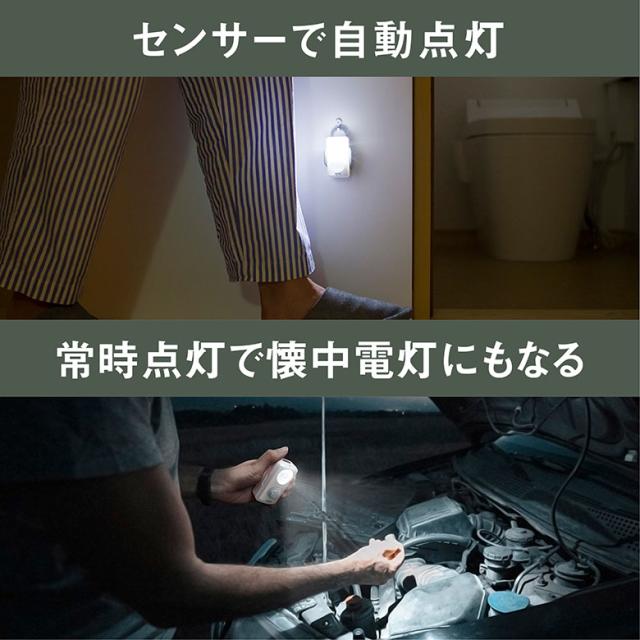 センサーライト ムサシ どこでもminiセンサー(GS-150) 乾電池式 コンパクト 携帯 小型ライト マグネット取り付け 両面テープ ネジ止め 懐中電灯 自動点灯 防犯 防災グッズ 作業灯 散歩 スポットライト 照明 玄関 寝室 廊下