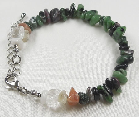 【高次活性化Azozeo】 ハートチャクラが劇的に開くよう促す成長と豊かさの石 ルビーゾイサイト さざれ +4種のアゾゼオアゼツライト ブレスレット B1rubz002