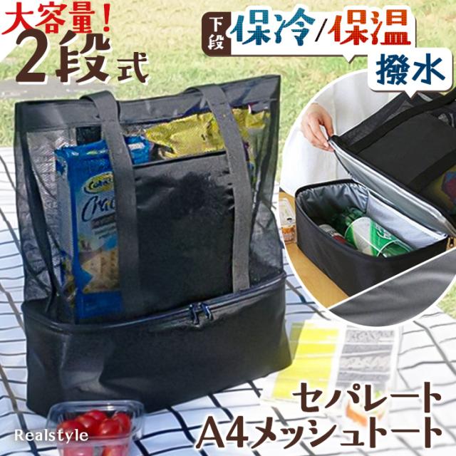 保冷保温機能が付いた2段式メッシュトートバッグ!