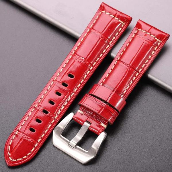 本革時計バンド黒茶色赤青緑オレンジ女性男性時計ストラップ PAM アクセサリー 20 ミリメートル 22 ミリメートル 24 ミリメートル