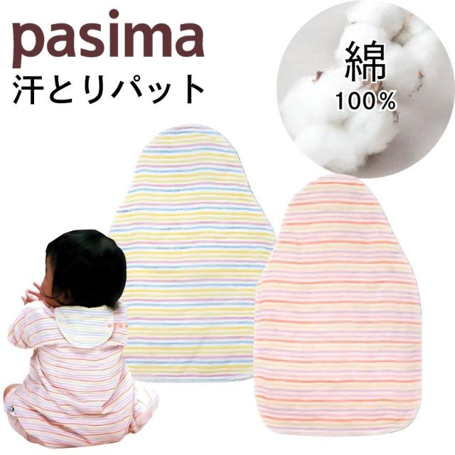 赤ちゃんは汗っかき。暑い季節の寝汗対策には、日本製の高品質な汗取りパットが欠かせません。 このベビー用汗取りパットは、綿100%のパシーマ素材を使用し、吸水性・通気性抜群!背中の汗をすばやく吸収し、さらりと快適な状態をキープします。