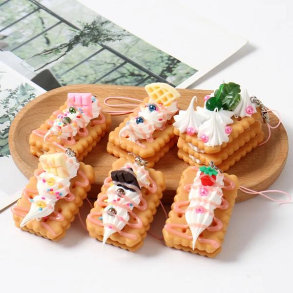 シミュレーション食品おもちゃモデルキーチェーン、クリーム、クッキー、フルーツ、ケーキ、デザート、携帯電話、バッグ、ペンダントギフト、装飾、車