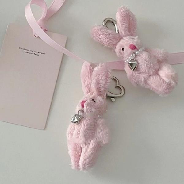 ピンクのウサギの形をしたキーホルダー,ハート型のぬいぐるみ,ファッショナブルなコイン,装飾品,ギフト用