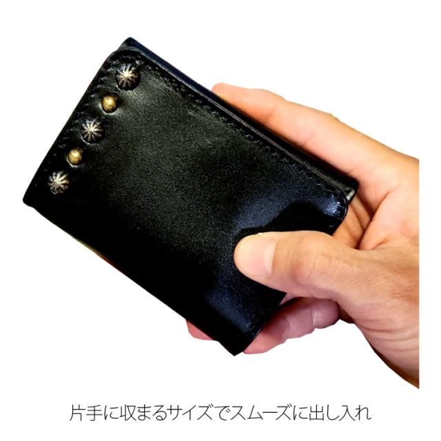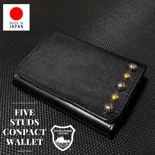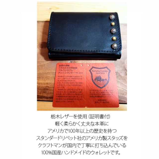 2つ折り財布 ファイブ USAスタッズ 日本製 栃木レザー コンパクト 財布 ウォレット レザー財布 本革 ミニウォレット 父の日 プレゼント 1-w100lw