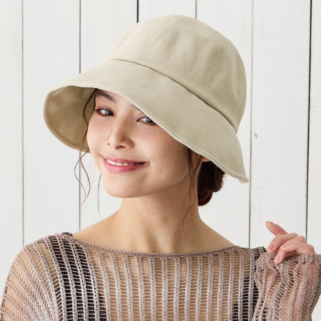 通気性のいいコットンリネン素材は、長い時間かぶっていても疲れない軽さとあり