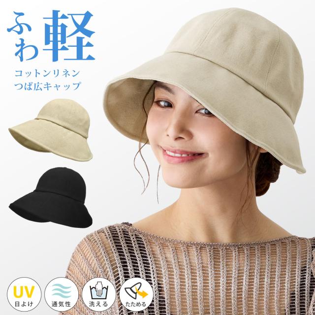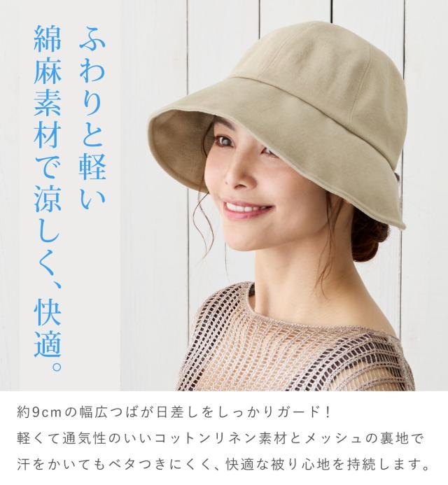 ふわっと軽い つば広 キャップ ワイドバイザー 髪を結んだまま 帽子 レディース 綿麻 ハット つば9cm 深め 小顔 57-61cm hat-1544 ヘムカット 大きめ 被る日傘 春夏 UV お洒落 ゆったり 暑さ対策 母の日 プレゼント 即納