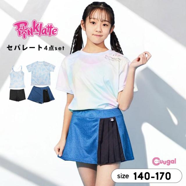 ピンクラテ セパレート水着 4点セット 女の子 キッズ ジュニア タンキニ 半袖 Tシャツ スカート スカパン 140cm 150cm 160cm 170cm 子供用 子供服 プール 夏 おしゃれ かわいい 小学生 中学生 PINK LATTE