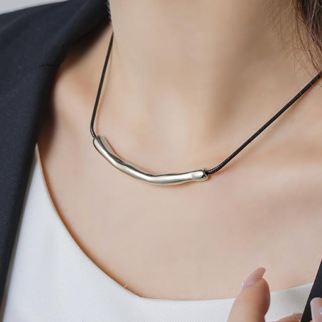 【ゆうパケットOK】 ネックレス レディース ショート レザーコード コードネックレス PUレザー メタル パイプ 歪み 大人 ゴールド シルバー ブラック outlet
