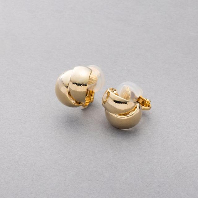 艶感のあるラインが重なり合うデザインのフープイヤリング。ミニマルなシルエットでデイリーに使い回しが効くアイテムです。シリコンキャッチ付きのクリップ式イヤリング金具で、長時間の着用も痛くなりにくいのが嬉しいポイント。耳元にさりげない華やかさと上品さをプラスしてくるひと品です。