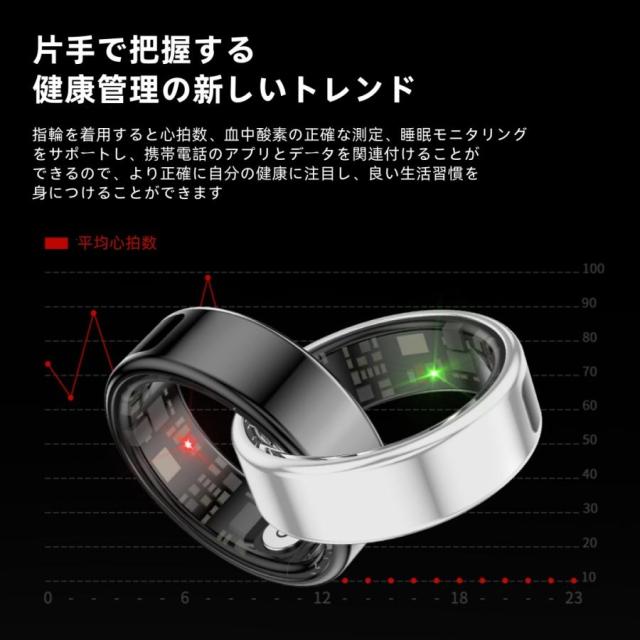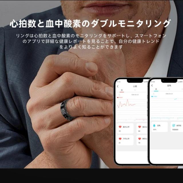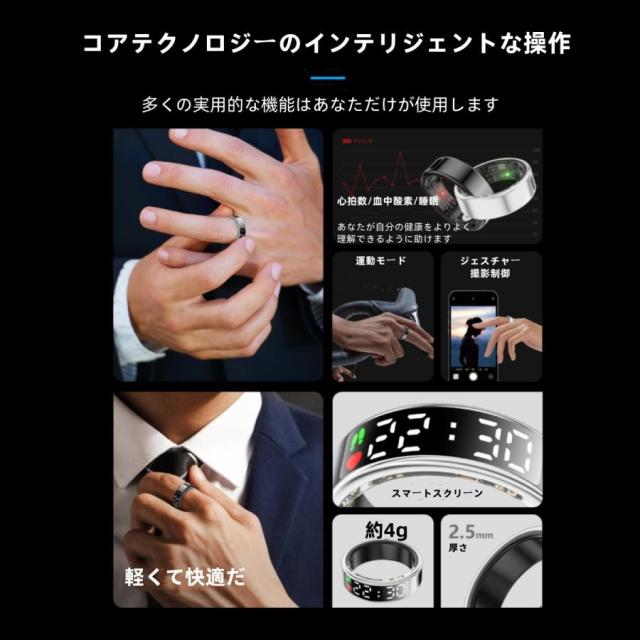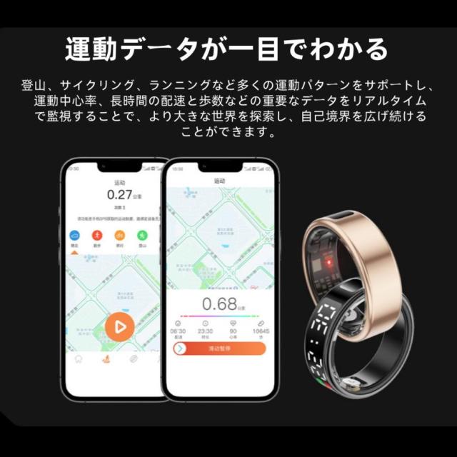 【ディスプレイ表示機能】スマートリング 健康管理 日本製センサー心拍数 血中酸素 睡眠 実用的 IP68M防水 Android/iPhone対応 全6サイズ プレゼント 敬老の日