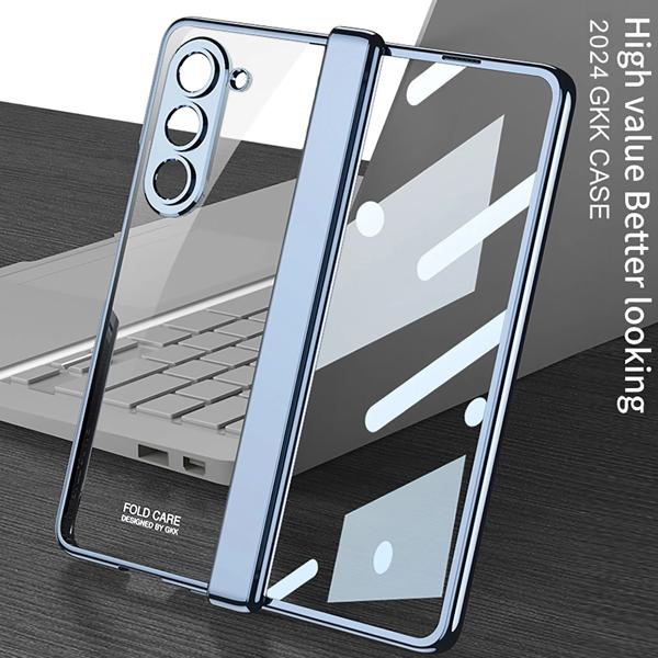 サムスンギャラクシーZ用の耐衝撃カバー,6つ折りケース,一体型電気メッキシェルフィルム,透明な折りたたみヒンジ,完全保護カバー