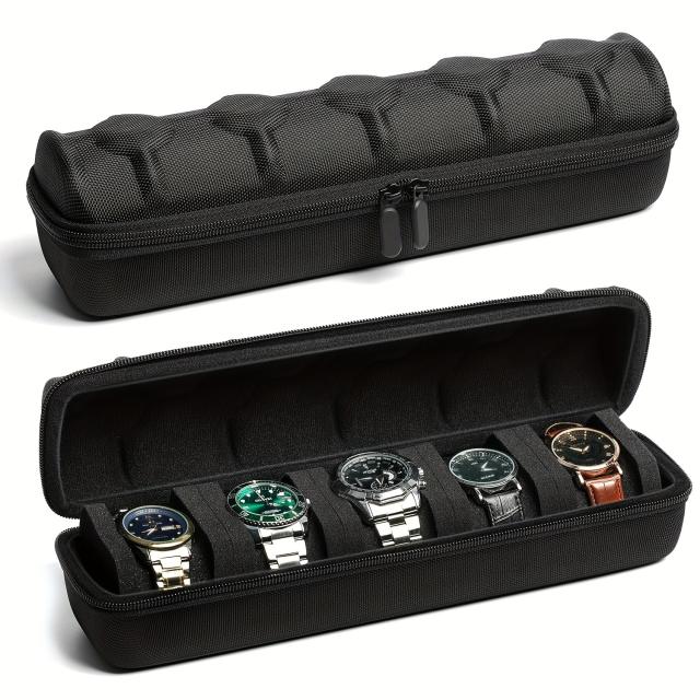 高級時計収納ケース、5個収納、ハードシェル、持ち運び便利