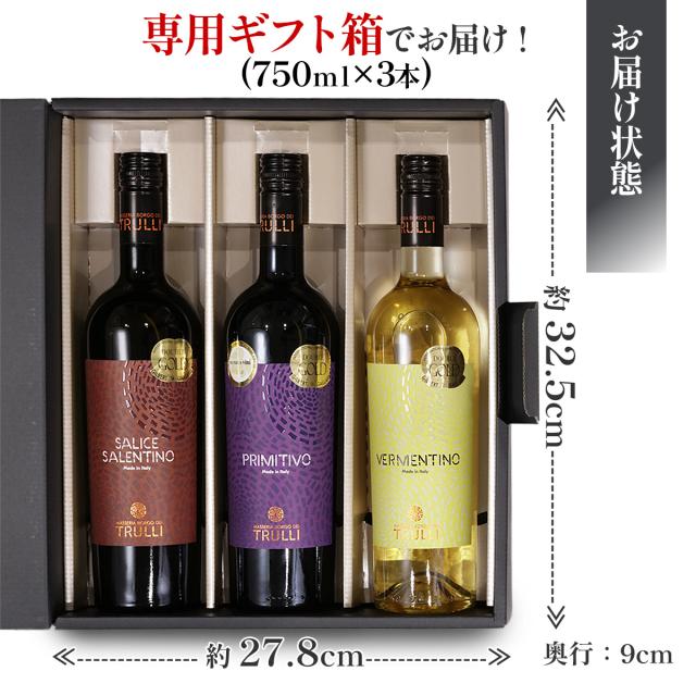 【赤・白】マッセリア・ボルゴ・デイ・トゥルッリ フルボディ 3本ギフトセット イタリアワイン 赤 白 福袋 セット 誕生日 記念日 贈り物 かわいい [ 750ml 3本 ] ギフト 送料無料 WineDish 年末お届け可能 冬ギフト 年末年始 クリスマス_dk