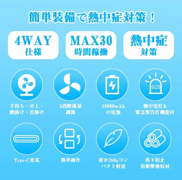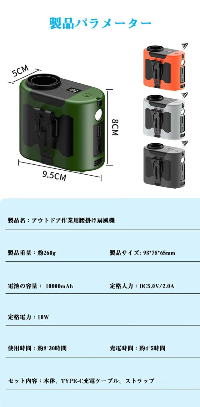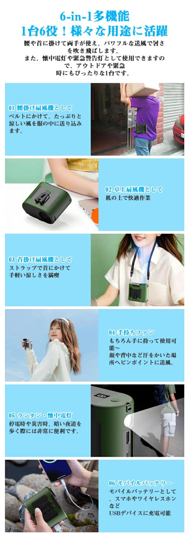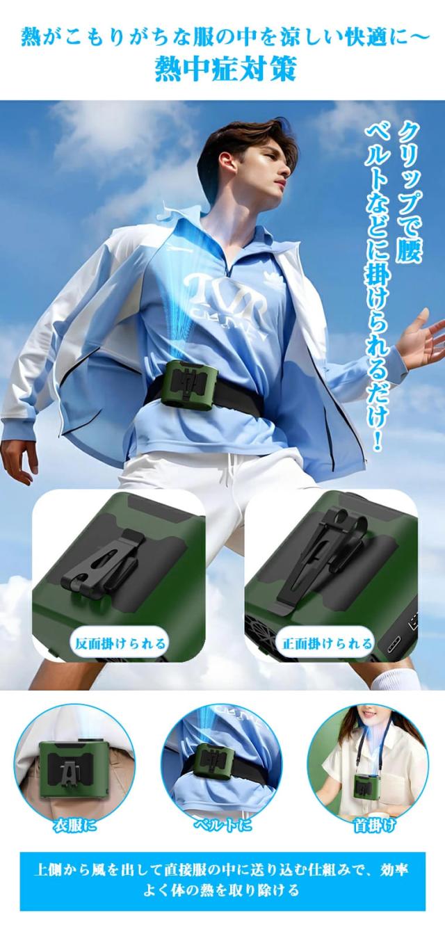 扇風機 腰掛 ベルトファン 首かけ 静音 充電式 腰掛け ハンズフリーファン 携帯 USB扇風機 手持ち扇風機 卓上扇風機 小型ファン 涼しい 10000mAh 大容量 5階段風量 暑さ対策 熱中症対策 室外労働者向き 高温屋外作業 出張 アウトドア 釣り