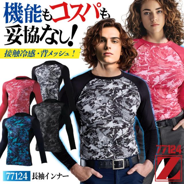 自重堂 長袖インナー メンズ レディース ストレッチ 接触冷感 吸汗速乾 消臭 抗菌 UVカット 春夏 秋冬 インナー ロングスリーブ 仕事服 おしゃれ ネコポス jd-77124
