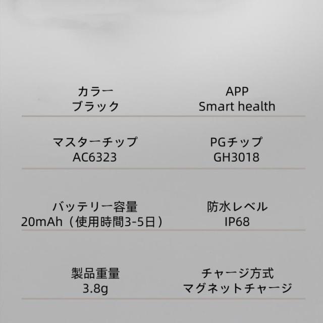 リングの本体*1、取扱説明書*1、専用充電ケーブル*1。
