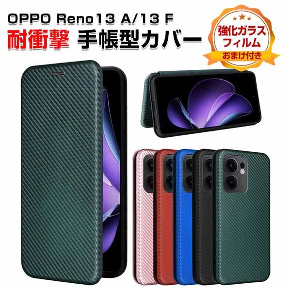 オッポ OPPO Reno13 A/Reno13 Fケース カバー スマートフォン 保護 手帳型 TPU&PUレザー カーボン調 おしゃれ CASE 汚れ防止 耐衝撃 落下防止 便利 実用 カード収納 ブック型 カッコいい オッポ リノ13 A/リノ13 F 5G 人気 スマホ 手帳型カバー 強化ガラス付き