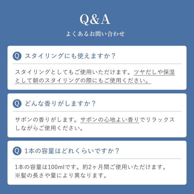 サボンの心地よい香りでリラックスでき、ドライの後もふんわりと香りが持続します。