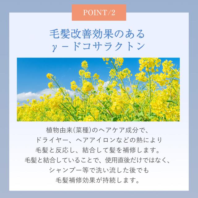 髪のうねりや広がりが気になる、美容院に行く手間や費用を抑えたい。こんな悩みを持つ方にぴったりなヘアオイルで、毛髪にはり、こしを与えてくれます。