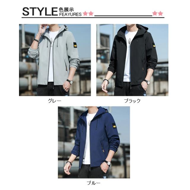 ジャケット メンズ ジャケット マウンテンパーカー フード付き 薄手 撥水 大きいサイズ アウトドアウエア 春秋 登山 防風 ブルゾンジャケット