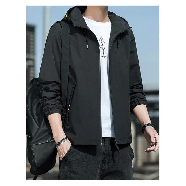 シンプルな無地デザインで爽やかな着心地を実現しているメンズジャケットです。