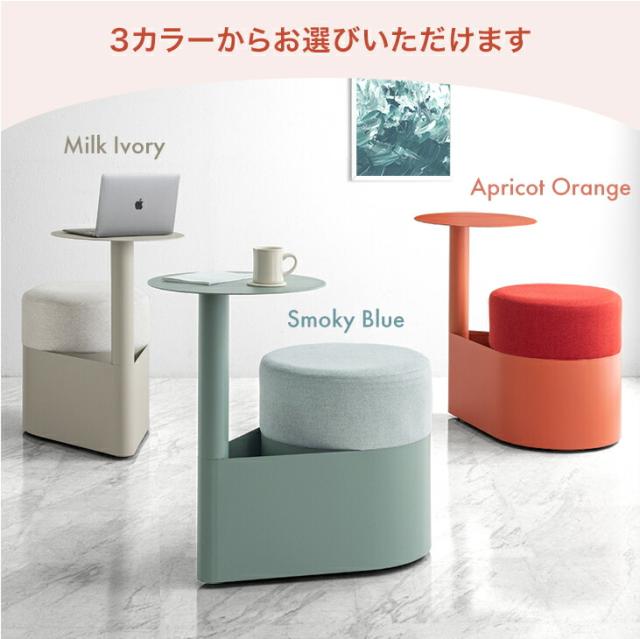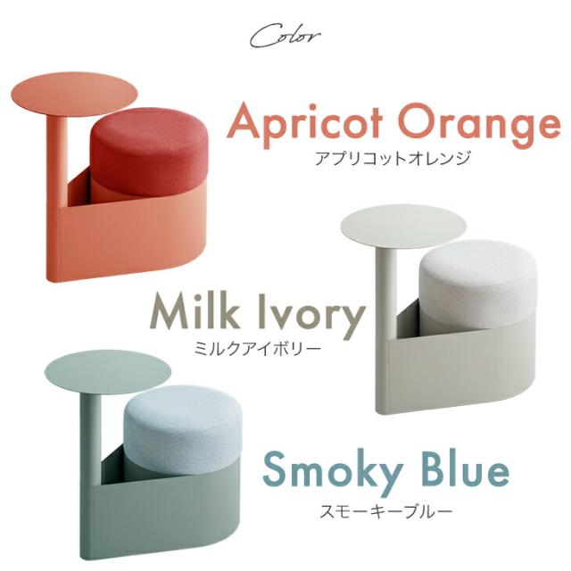 スモーキーブルー、アプリコットオレンジ、ミルクアイボリー