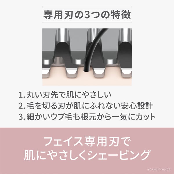 ・丸い刃先で肌にやさしい、約0.12mmのうす刃。水なしですっきり剃れる。