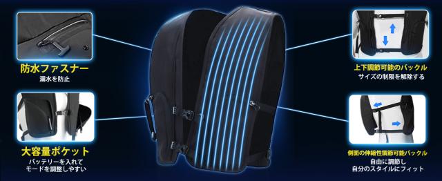 【−20℃の体感温度・10000超大容量・30H以上充電不要】体に冷水が密着し、着用時の体感温度は-20℃と冷却効果抜群です。10000mAh超大容量のバッテリーがつき、氷の補充や、凍った保冷剤は詰め替えて頂く必要がありますが、バッテリーひとつで一日持つので、長時間の作業も安心です。簡単3ステップで体を冷やす!?背中のバッグに冷水を約400ml〜500ml入れる。?背中のバッグに凍った保冷剤をチャージ!または、氷でもお使いいただけます。?バッテリーONで3つモード切り替えの操作も簡単です。(?連続使用・?20秒作動-45秒停止・?20秒作動-1分30秒停止)
