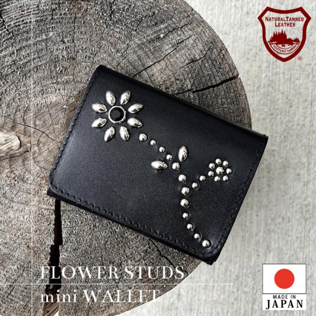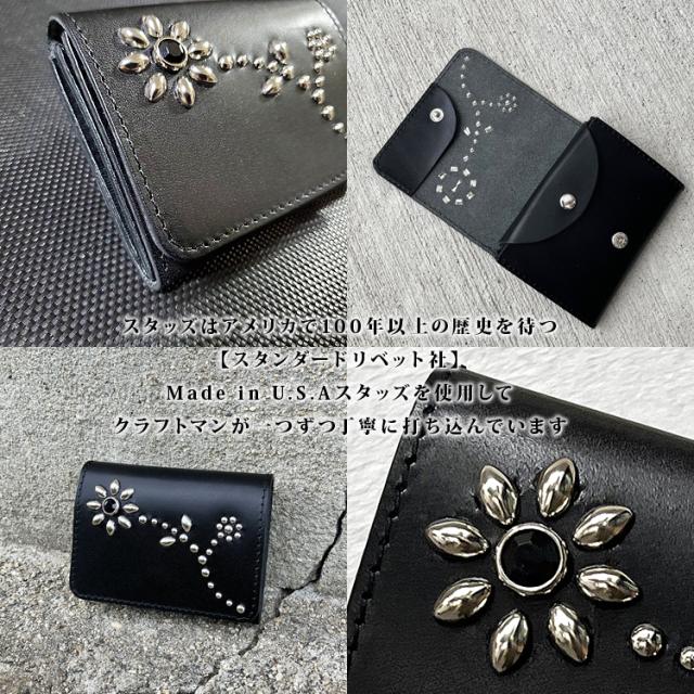 2つ折り財布 フラワースタッズ USAスタッズ 日本製 栃木レザー 財布 ウォレット 使いやすいサイズの財布 ミディアムウォレット コンパクト 本革 ハンドメイド 71-w100lw