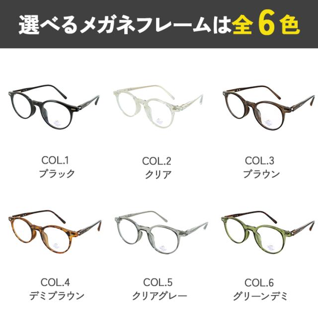 | <フレームカラー> COL.1 ブラック COL.2 クリア COL.3 ブラウン COL.4 デミブラウン COL.5 クリアグレー COL.6 グリーンデミ | <素材> フレーム材質:プラスチック テンプル材質:プラスチック |