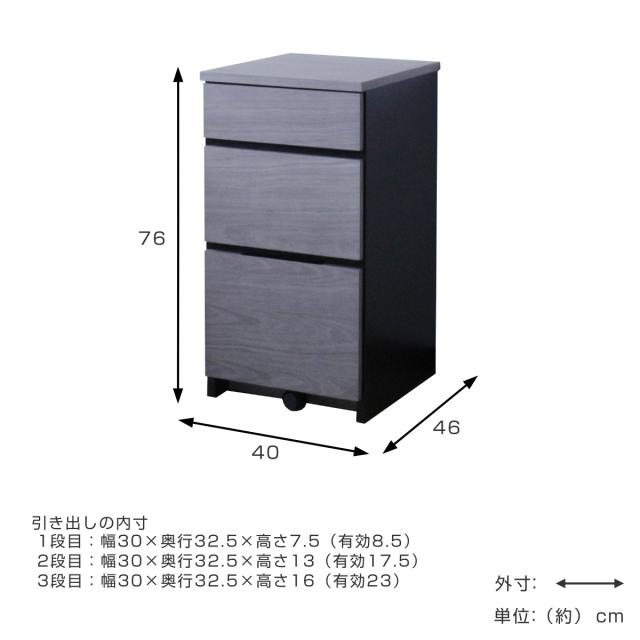 デスクワゴン 3段 キャスター付 幅40cm ( ワゴン サイドワゴン 引き出し 収納 デスク横 完成品 サイドチェスト フルスライド 木製 脇机 キャビネット サイドキャビネット 書斎 書類整理 おしゃれ )
